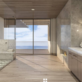 Only the finest materials and fixtures will grace the residence. A partial inventory reveals Starfire tempered glass, premium walnut and French oak; Nublado, Carrara and Statuarietto marble; and kitchen fixtures by Dornbacht, complemented by top-of-the-line La Cornue, Miele and Viking appliances. The home’s amenities defy a simple list, a sampling includes pools and water feature, a putting green and golf simulator, spa and sauna, home theater, office, wine wall, terraces and outdoor spaces. The offering price is for the completed home to be built by the Seller for the Buyer.